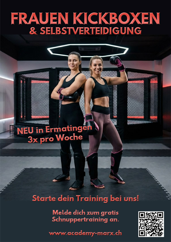 Stärke, Eleganz und Selbstbewusstsein vereint – entdecke die Welt des Frauenkickboxens! Erlerne effektive Techniken zur Selbstverteidigung, forme deinen Körper und steigere deine Ausdauer. Egal ob Anfängerin oder Fortgeschrittene, bei uns findest du die perfekte Balance aus Fitness und Spass. Komm zu uns und werde Teil einer starken Gemeinschaft, die dich unterstützt und motiviert.
